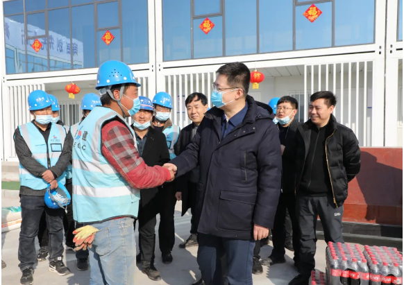 在新春佳節(jié)來(lái)臨之際,2月8日至9日,延安市委常委、常務(wù)副市長(zhǎng)劉曉軍、住建局局長(zhǎng)徐步亮、副局長(zhǎng)郭毅等先后到我公司項(xiàng)目慰問(wèn)堅(jiān)守在施工一線的廣大員工。