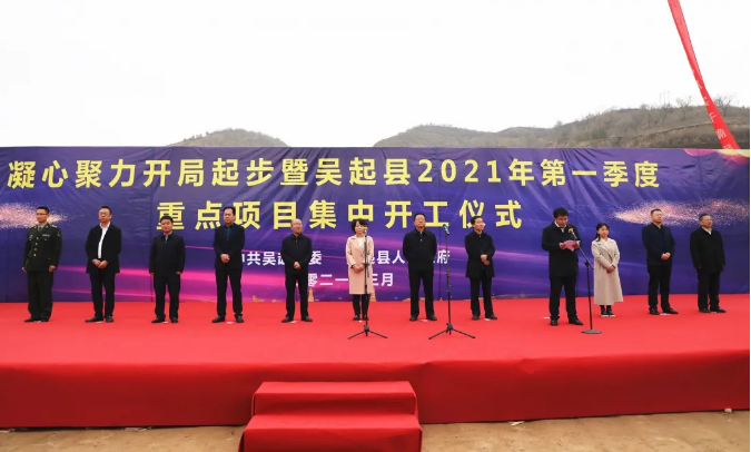 開工儀式上,吳起縣委書記嚴(yán)曉慧作了動員講話并宣布吳起縣2021年第一季度重點(diǎn)項(xiàng)目正式開工。嚴(yán)書記在致辭中指出,吳起縣將始終秉承“項(xiàng)目為王,招商第一”的理念,全力營造有利于項(xiàng)目建設(shè)的優(yōu)質(zhì)環(huán)境,以高質(zhì)量項(xiàng)目推動高質(zhì)量發(fā)展,希望各項(xiàng)目建設(shè)單位倒排工期,掛圖作戰(zhàn),高標(biāo)準(zhǔn)建設(shè),高效率推進(jìn),把每個項(xiàng)目都建成精品工程。