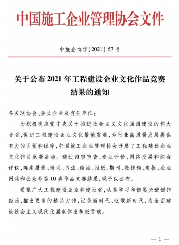 近日,中國(guó)施工企業(yè)管理協(xié)會(huì)公布了2021年工程建設(shè)企業(yè)文化作品競(jìng)賽獲獎(jiǎng)名單。陜建十三建集團(tuán)企業(yè)官網(wǎng)和微信公眾號(hào)分別榮獲優(yōu)秀獎(jiǎng)。