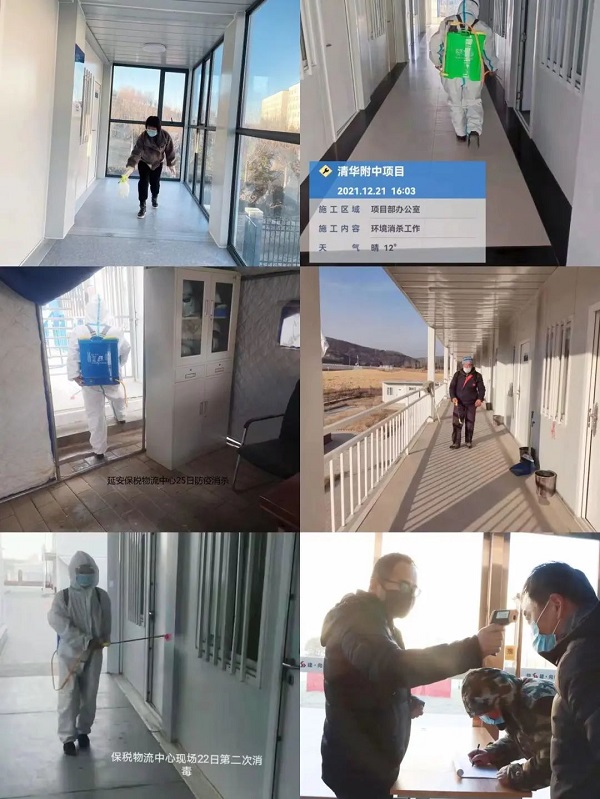 第二工程公司組織全體職工開展聯(lián)防聯(lián)控工作,構(gòu)筑起抵御疫情的嚴(yán)密防線。做好員工日常掃碼登記測溫、辦公及餐廳區(qū)域消殺工作。積極主動在各類線上平臺傳播正能量,宣傳病毒防范知識,及時給集團(tuán)上報每日防疫工作情況。各項目部對本項目的防疫情況進(jìn)行自查,對辦公區(qū)及施工現(xiàn)場堅持做到每日三次全面消毒,組織項目一線人員進(jìn)行核酸檢測,確保全方位扎實做好疫情防控工作。