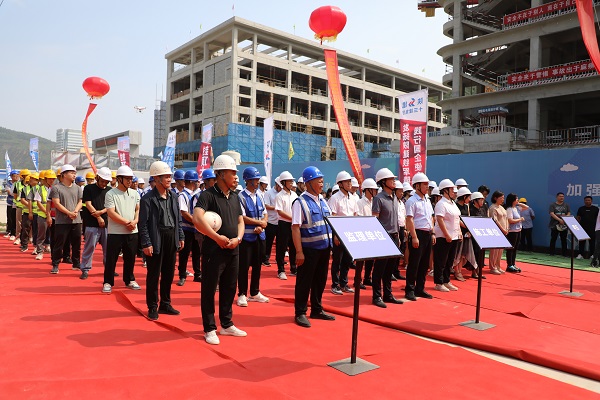 建設(shè)單位、監(jiān)理單位相關(guān)人員,集團(tuán)相關(guān)部門(mén)及項(xiàng)目全體人員參加了封頂儀式。